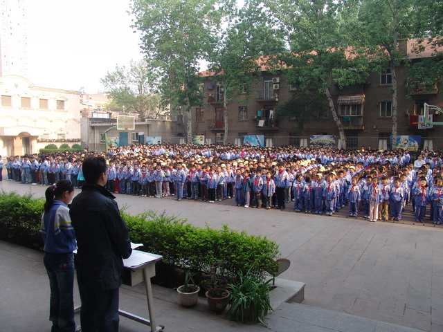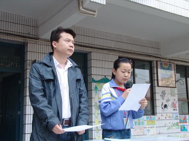 4月13号上午,在升国旗仪式结束后,我校大队部公布了“第八期环保之星”同学名单,并拍照留念。