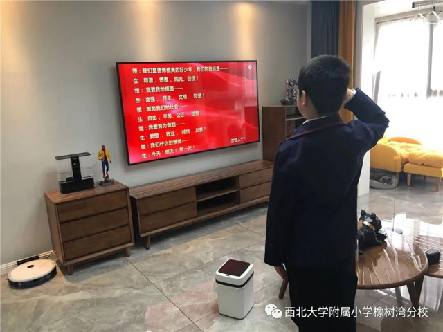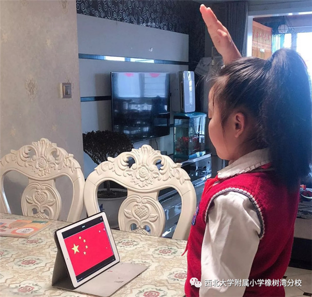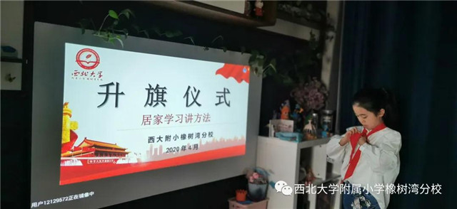 队员们,上网课已经两个月了,在家上网课,大家要拒绝“三分钟热度”“三天打鱼两天晒网”这种现象,开学后“本领”见分晓。今天线上升旗仪式的主题是“居家学习讲方法”。