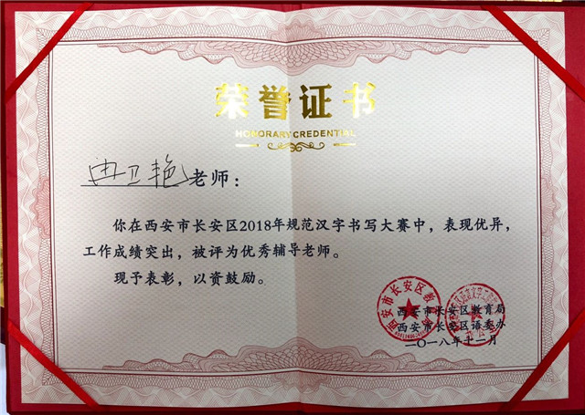 丹桂飘香,和风送爽。2018年11月9日,由长安区语言文字工作委员会主办的“中国梦.爱国情.成才梦”规范汉字书写大赛圆满落幕,我校荣获“优胜奖”,冉卫艳老师被评为“优秀辅导老师”。