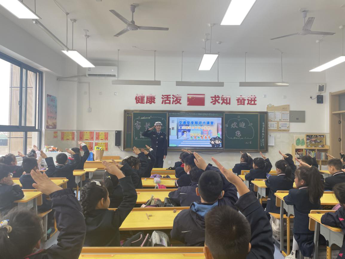 交通安全记心间。二年级4班家长为学生带来了一节生动有趣的交通安全教育课。二年级5班迎来了一位英姿飒爽的女交警阿姨;同学们向穿着警服的阿姨投去了羡慕的目光。阿姨用最标准的敬礼向学生问好,学生回以标准的队礼。二年级6班家长为同学们讲解了安全知识及自救自护方法。