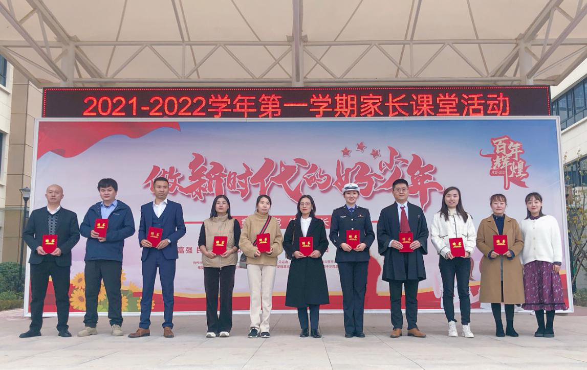 我校聘请各位家长为课外辅导员并颁发聘书,期待家长们能为学生带来更多精彩的知识。