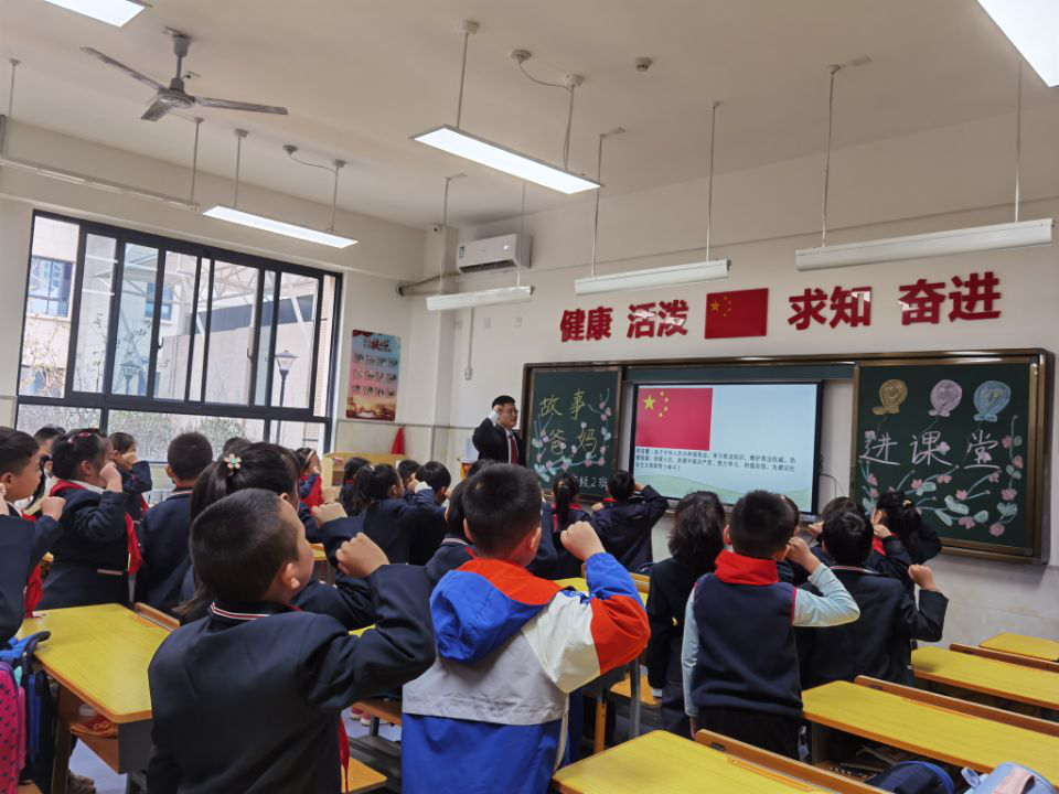 法律伴我成长,律师家长通过讲解“法律是什么”,认识法律人物,让学生对法律知识有了初步的了解。孩子们踊跃发言,表达出自己的观点,跟大朋友的配合相当默契。