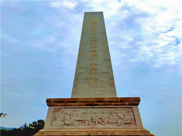 纪念碑上镌刻着“陕甘边革命根据地的英雄们永垂不朽”十六个大字。在英雄纪念碑前,全体党员庄严肃穆,向革命先烈敬献花篮,并行三鞠躬礼。