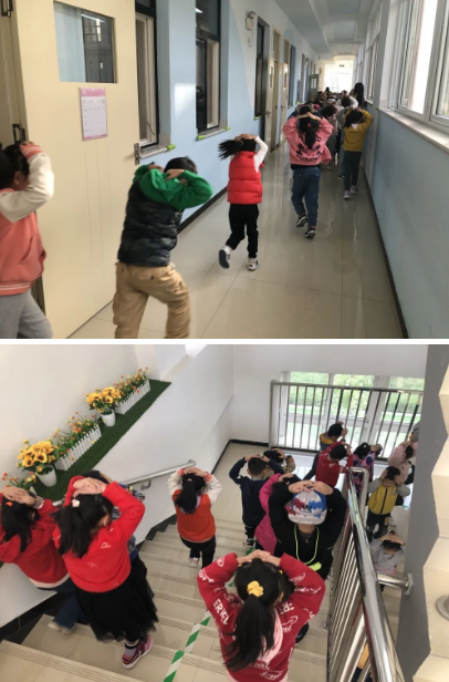 创新分校的演练活动以“地震来了”为情景。随着警报拉响,孩子们在老师的指挥与带领下,不抢先、不拥挤,安全有序地撤离到指定地点。正副班主任老师陪护在队伍前端、尾端。负责各楼梯口的教师及时做好指引,整个撤离过程井然有序。